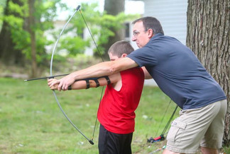 Jim Payne, executive director of Camp Orchard Hill, showed him how to draw, aim and release an arrow.